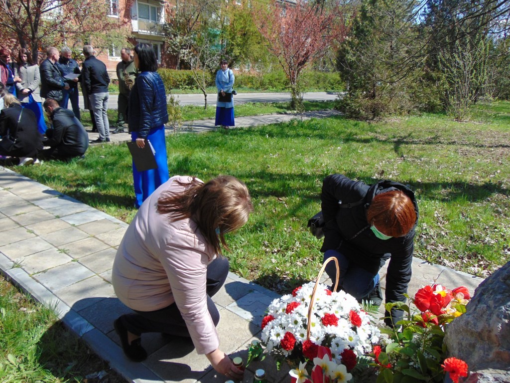 Сьогодні, 26 квітня, поблизу пам’ятного знаку учасниками ліквідації наслідків аварії на ЧАЕС пройшов мітинг-реквієм, присвячений 35-й річниці трагедії на Чорнобильській атомній електростанції.