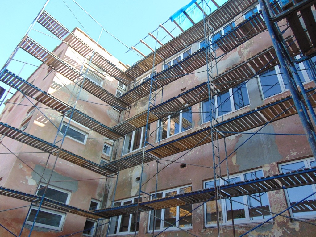 На сьогодні проведено роботи щодо облаштування частини парапетів на крівлі, проведено утеплення головного фасаду та частково бічного, триває фарбування стін. Також починається утеплення дворової частини фасаду.